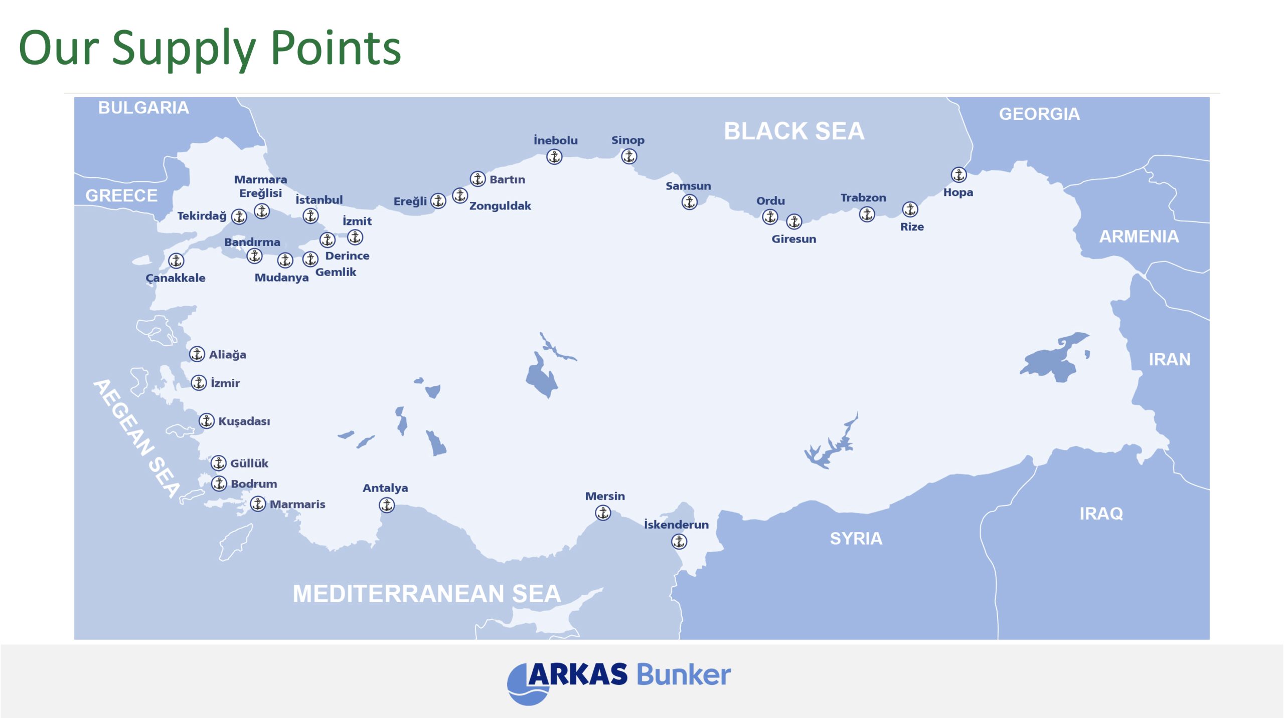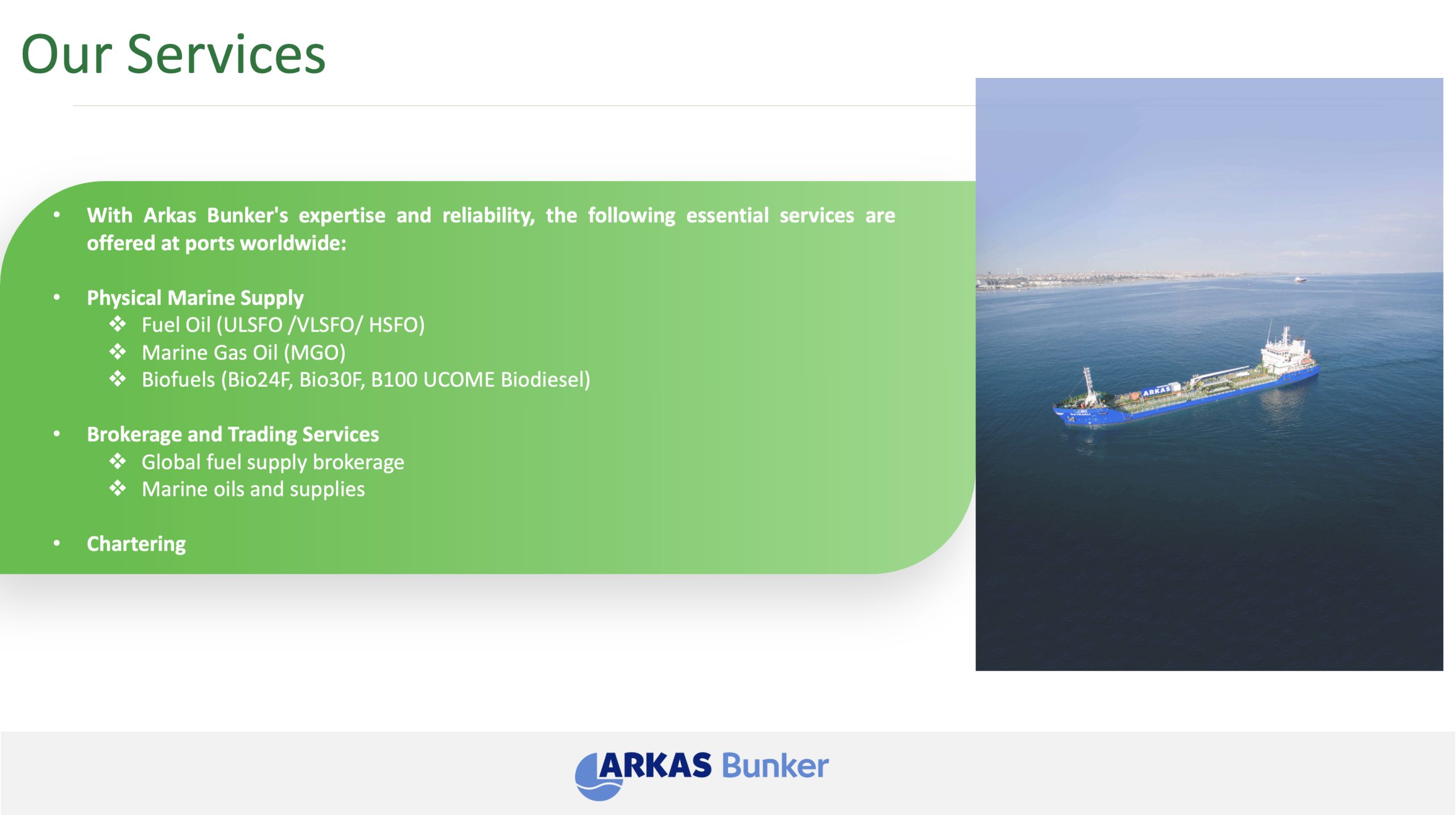 According to the 2012 Petroleum Market Report prepared by EMRA, Arkas Bunker ranked first in transit marine fuel sales with 480,277 tons based on fuel sales figures.